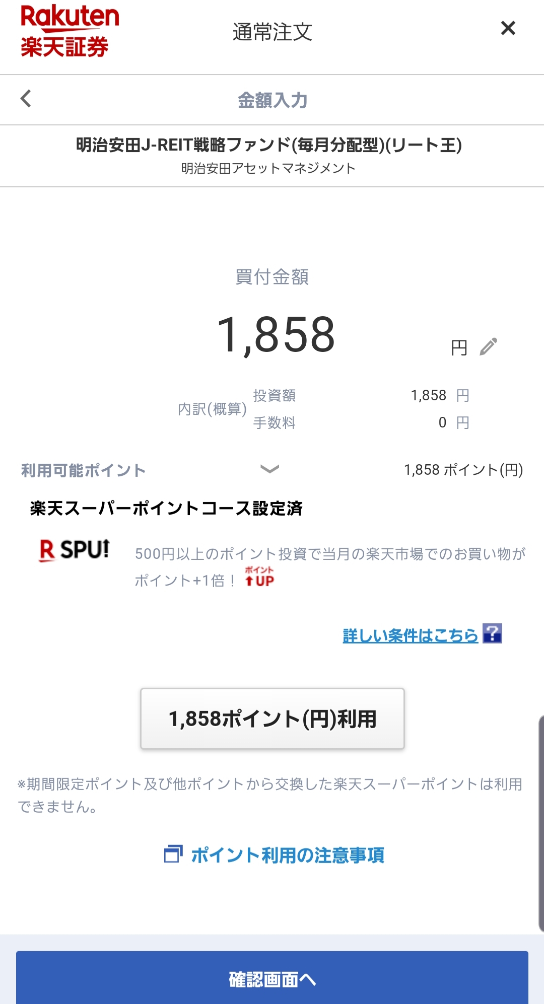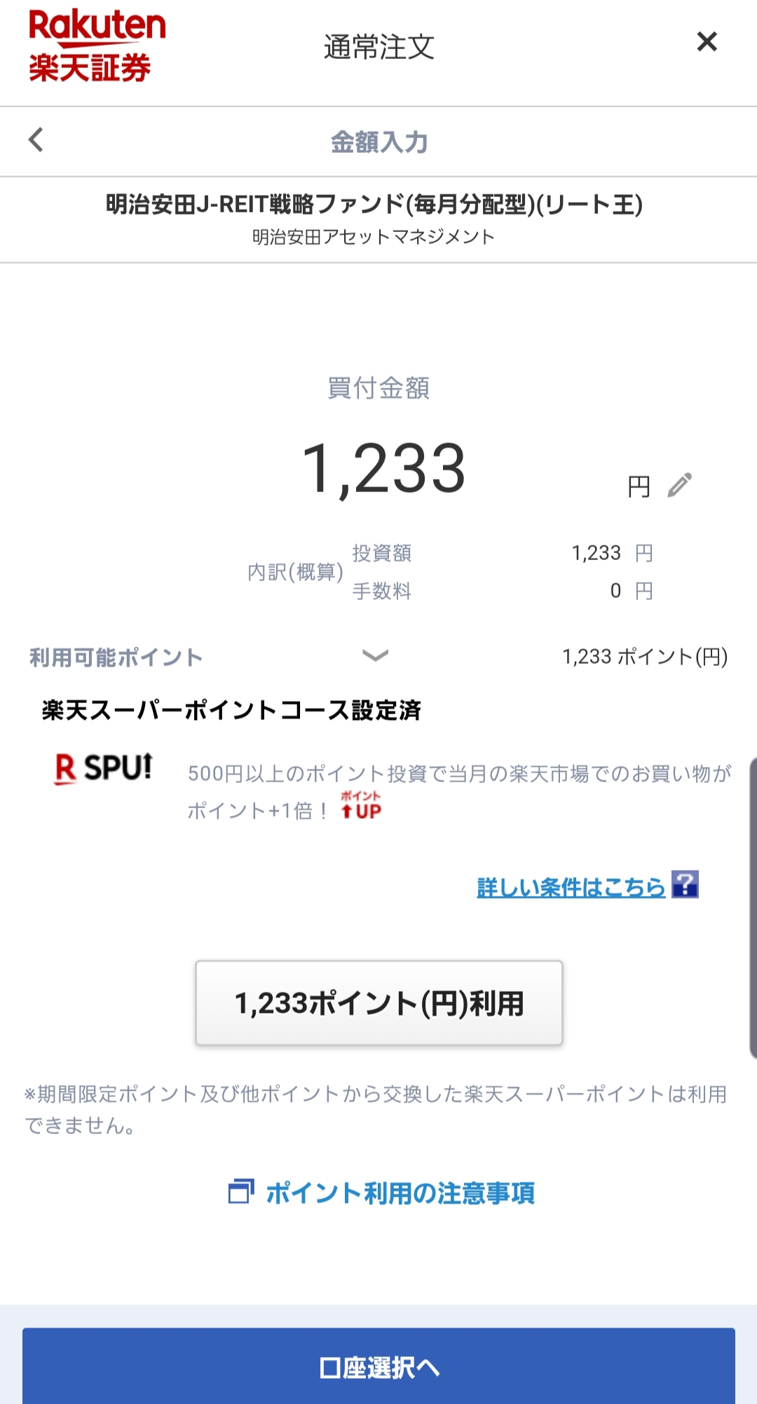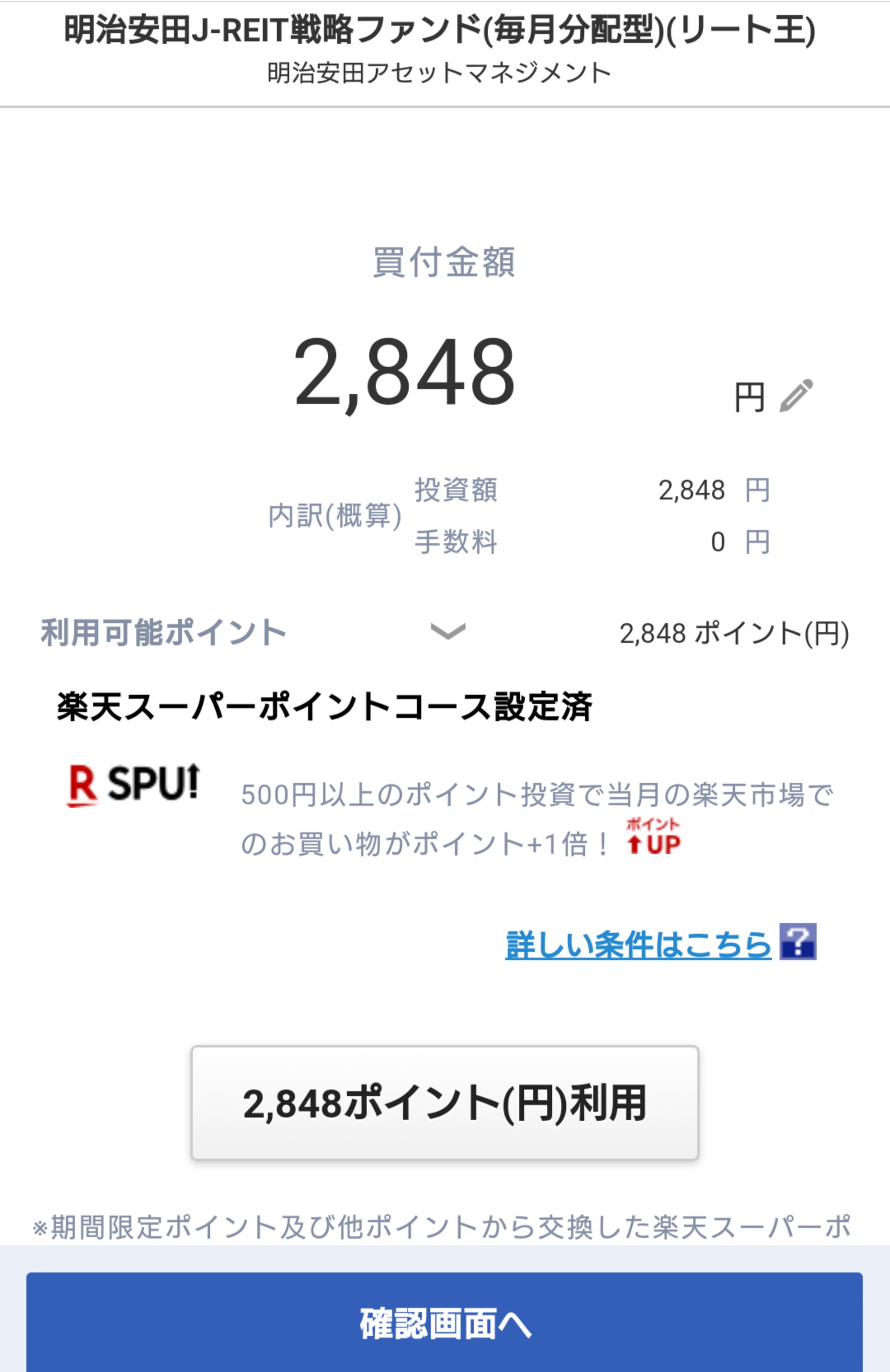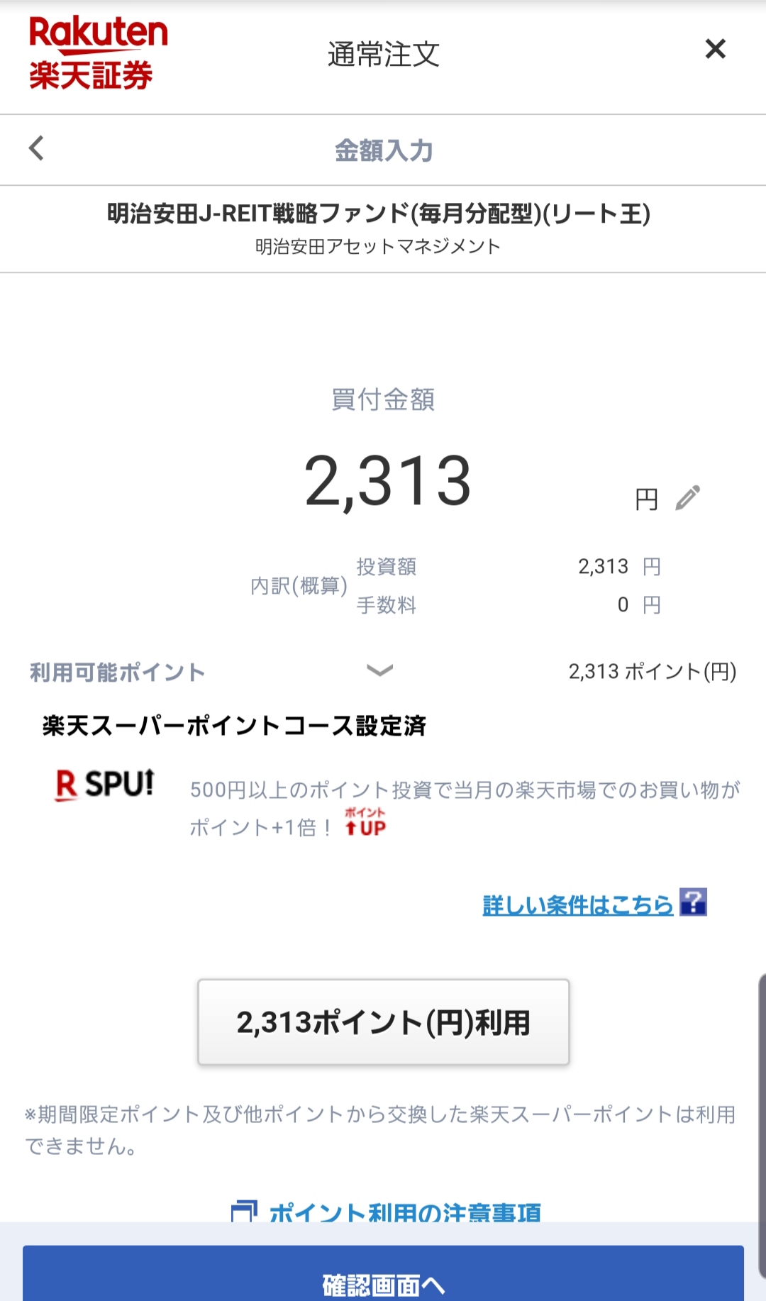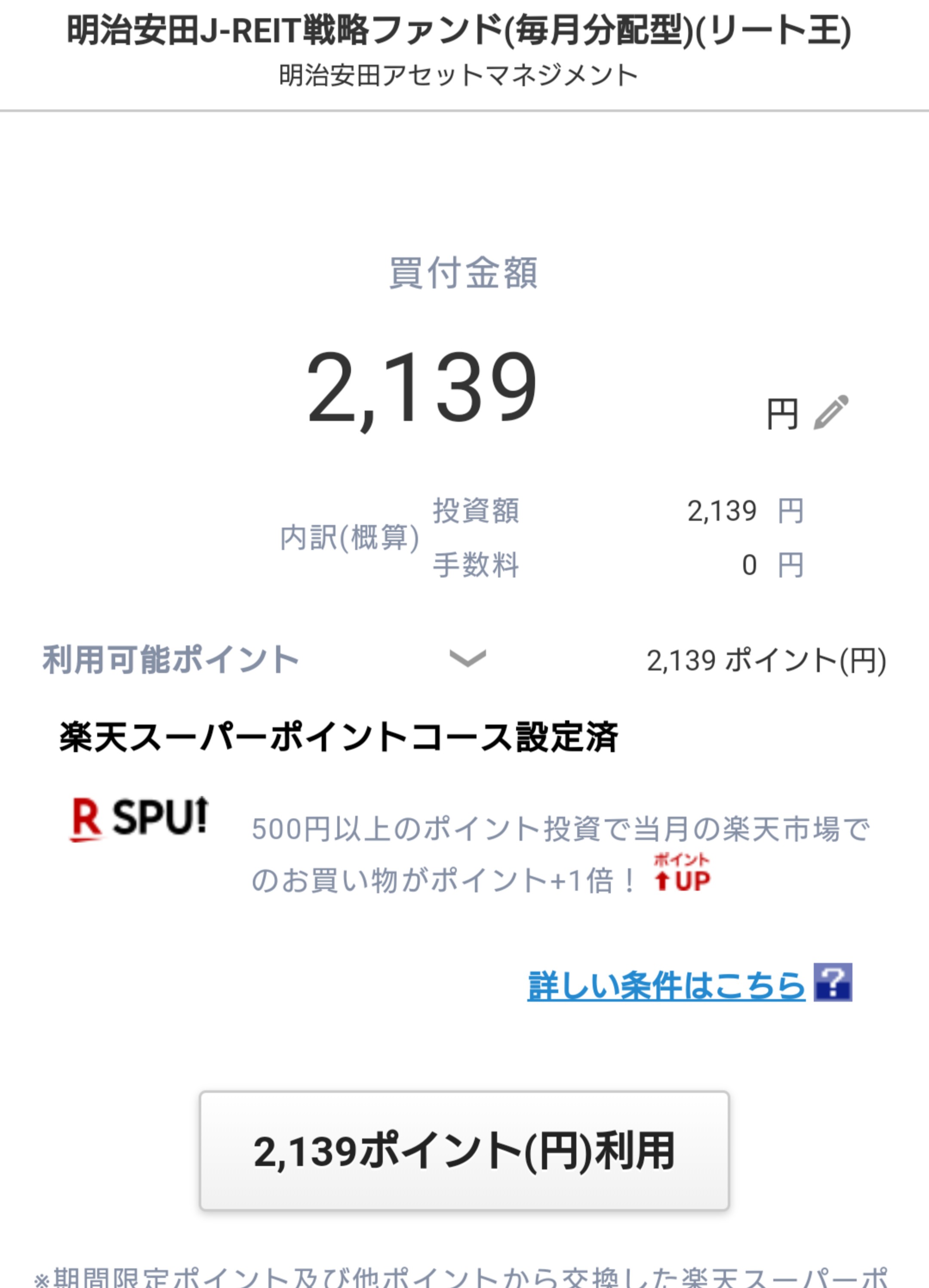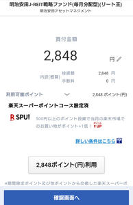 今日は先月の買い回りポイントが利用可能となり、二日連続での明治安田J-REITの購入です。