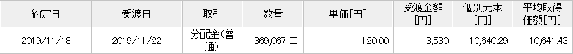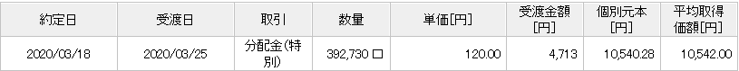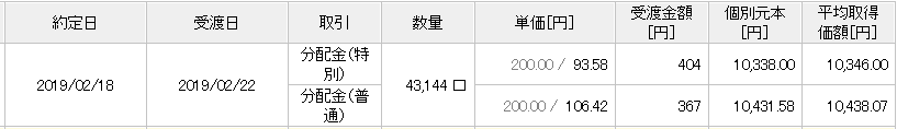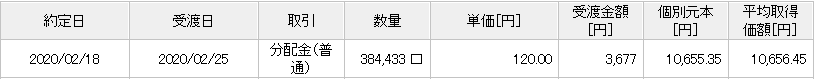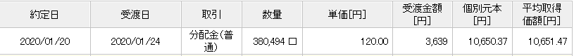 すべて普通分配金で、先月より38円の昇給となっています。