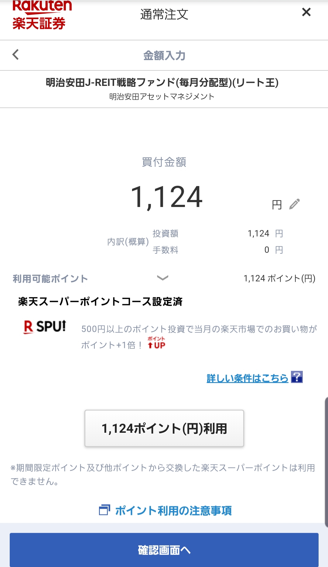 楽天ポイントで明治安田J-REIT投資信託(毎月分配型)購入~1113
